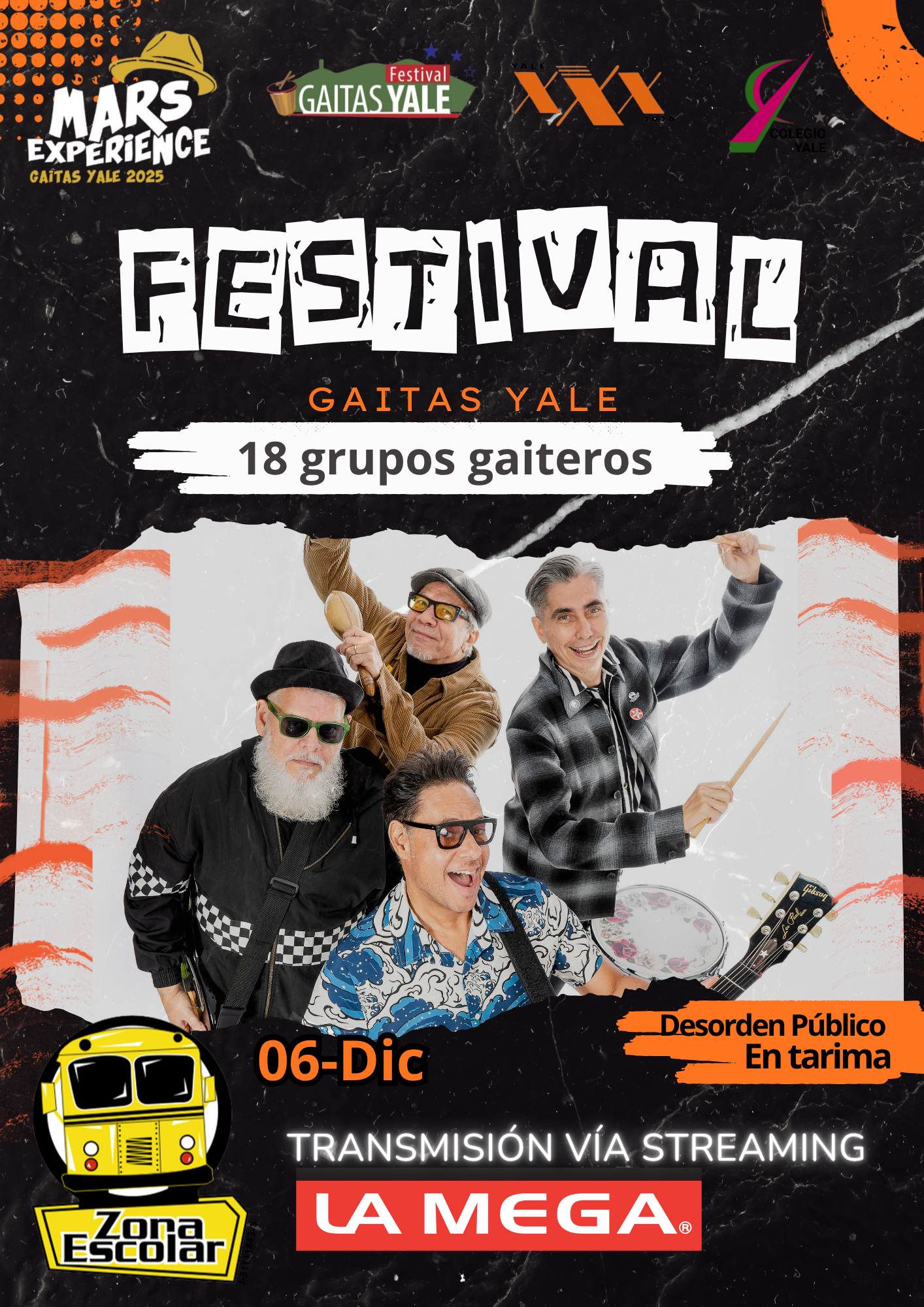 Disfruta de la tradición Gaitera Intercolegial el próximo 6 de diciembre en el Colegio Yale. "No dejes que te lo cuenten". Ven y disfruta de: